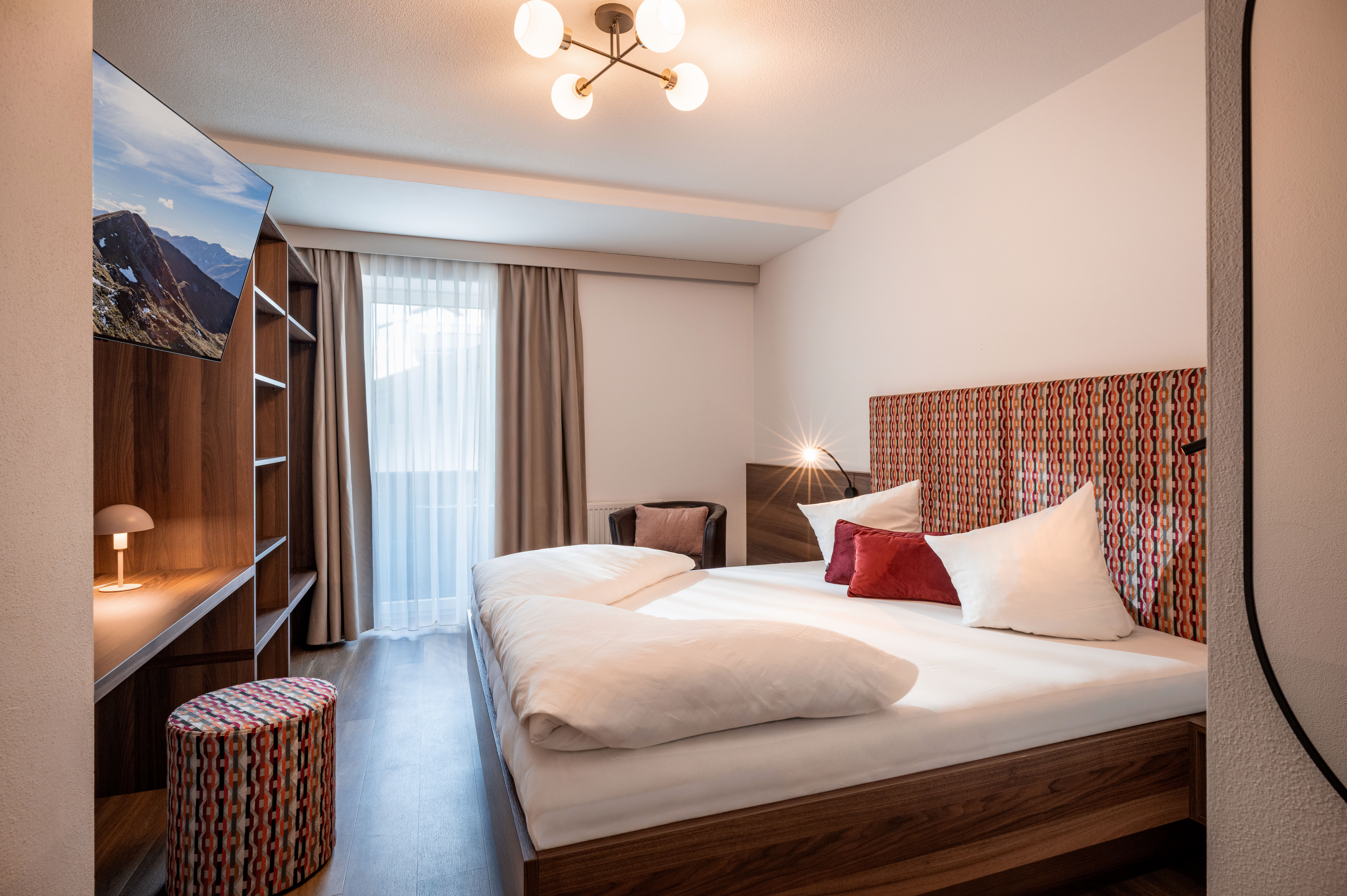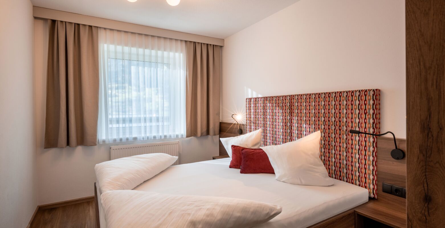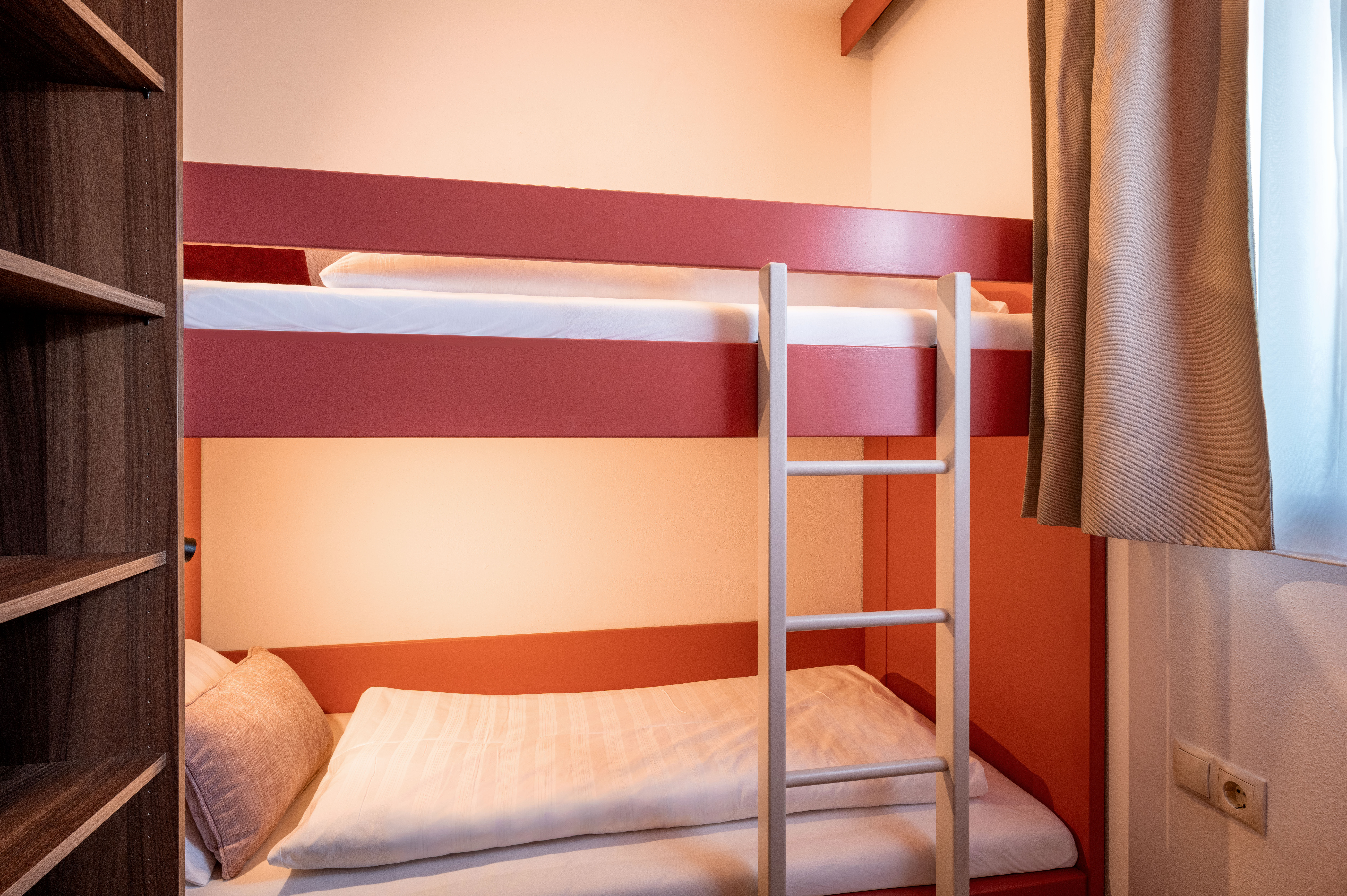 Apartment B1 zeichnet sich durch zwei Doppelzimmer sowie 1 Stockbettzimmer aus. Davon ist eins mit einem abgetrennten Badezimmer und eigenem Balkon ausgestattet. Im geräumigen Wohnbereich bietet ein Joka-Schlafsofa Platz für 2 Personen (anstelle des Stockbetts). Vom Wohnbereich aus gelangen Sie auf einen weiteren Balkon, von dem Sie die Bergwelt genießen können. Die Küche ist modernen Geräten ausgestattet: 4-Platten Induktionskochfeld, Spülmaschine, Mikrowelle, Filter-Kaffeemaschine, Wasserkocher, Toaster, geräumiger Kühlschrank von Liebherr mit Gefrierfach, sowie Koch- und Porzellangeschirr. Somit steht auch im Urlaub einer hausgemachten Mahlzeit nichts im Weg. Im Apartment befindet sich ein weiteres Bad mit Walk-in Dusche, Handtuchtrockner & Fön. Extra Komfort bietet das abgetrennte WC.