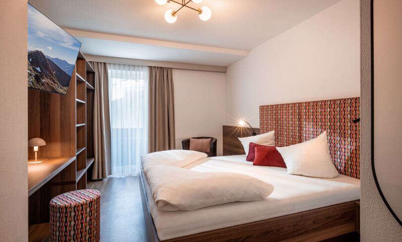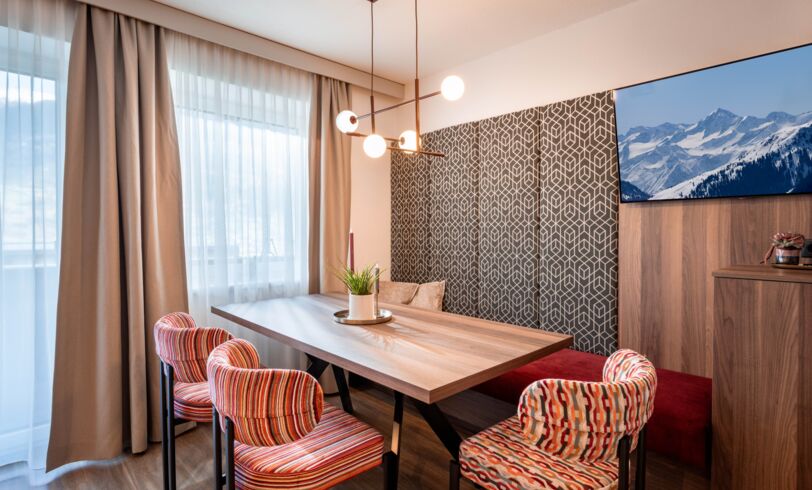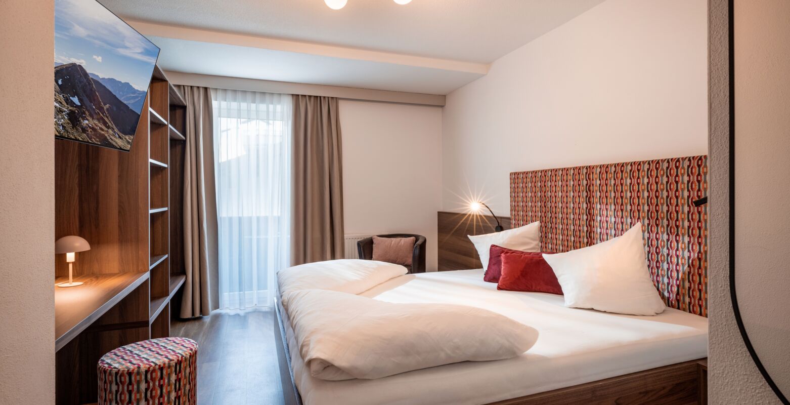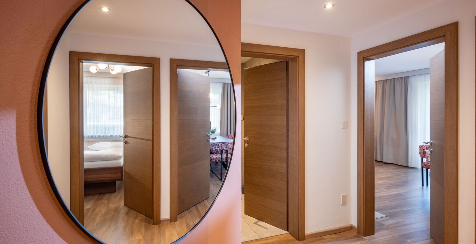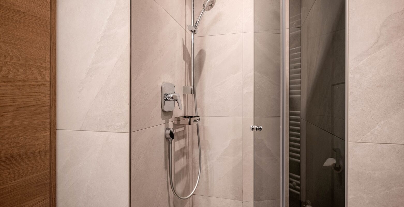 Apartment B1 zeichnet sich durch zwei Doppelzimmer sowie 1 Stockbettzimmer aus. Davon ist eins mit einem abgetrennten Badezimmer und eigenem Balkon ausgestattet. Im geräumigen Wohnbereich bietet ein Joka-Schlafsofa Platz für 2 Personen (anstelle des Stockbetts). Vom Wohnbereich aus gelangen Sie auf einen weiteren Balkon, von dem Sie die Bergwelt genießen können. Die Küche ist modernen Geräten ausgestattet: 4-Platten Induktionskochfeld, Spülmaschine, Mikrowelle, Filter-Kaffeemaschine, Wasserkocher, Toaster, geräumiger Kühlschrank von Liebherr mit Gefrierfach, sowie Koch- und Porzellangeschirr. Somit steht auch im Urlaub einer hausgemachten Mahlzeit nichts im Weg. Im Apartment befindet sich ein weiteres Bad mit Walk-in Dusche, Handtuchtrockner & Fön. Extra Komfort bietet das abgetrennte WC.